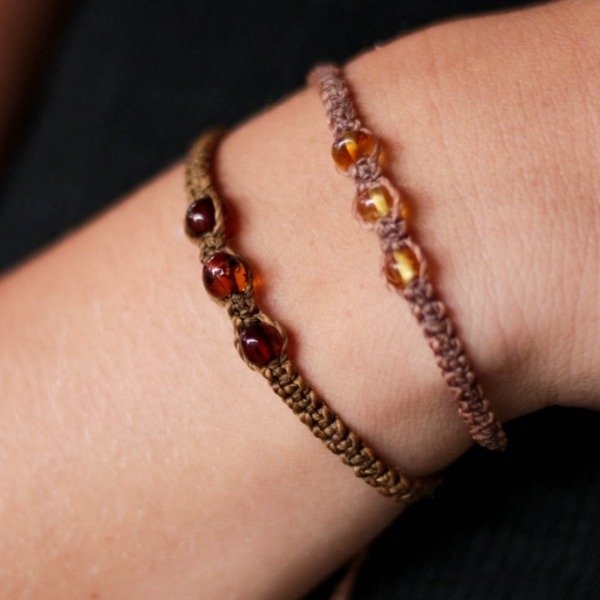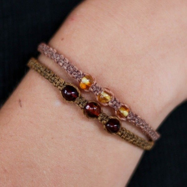 Pulsera tejida a mano en hilo encerado y cuentas de Ámbar.