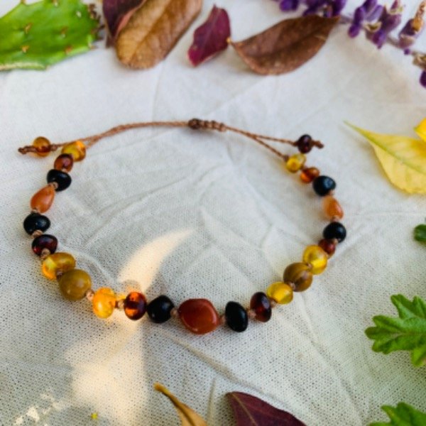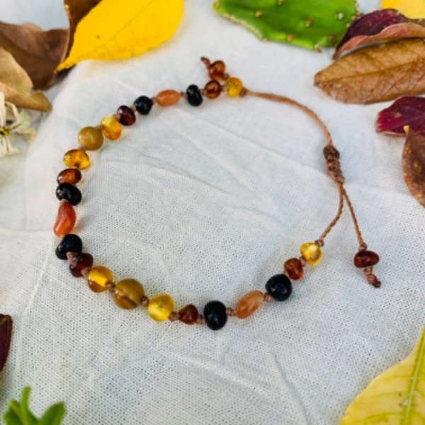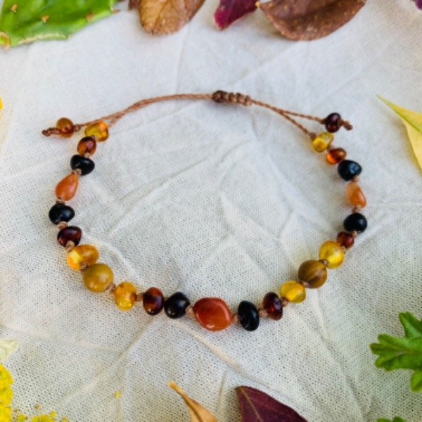 Pulsera en Ámbar Miel, Ámbar Cognac, Ámbar Cherry, Jaspe Madera y Ágata Cornalina.
