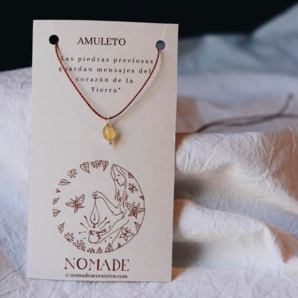 Amuleto en Cuarzo Citrino y cuentas de plata 925. Cordón en hilo encerado regulable.
