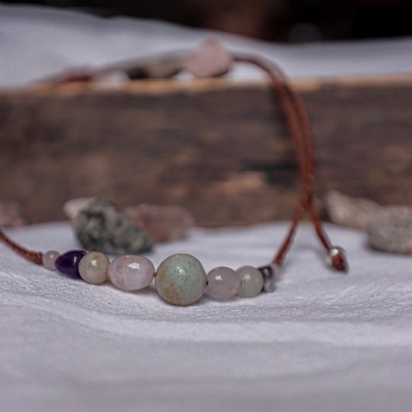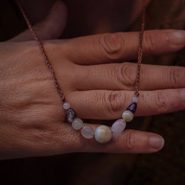 Tiene Amazonitas, Amatistas y Cuarzo Rosa.