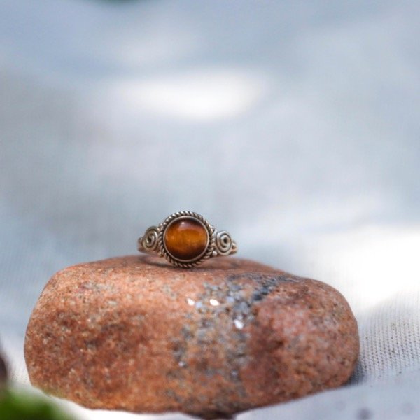 Anillo en plata 925 con Ojo de Tigre. Piedra Natural.