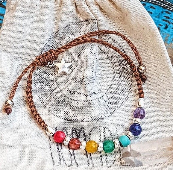 Pulsera con piedras naturales simbolizando los 7 centros energéticos del cuerpo para las culturas de oriente(7 chackras)
