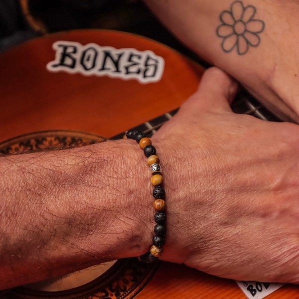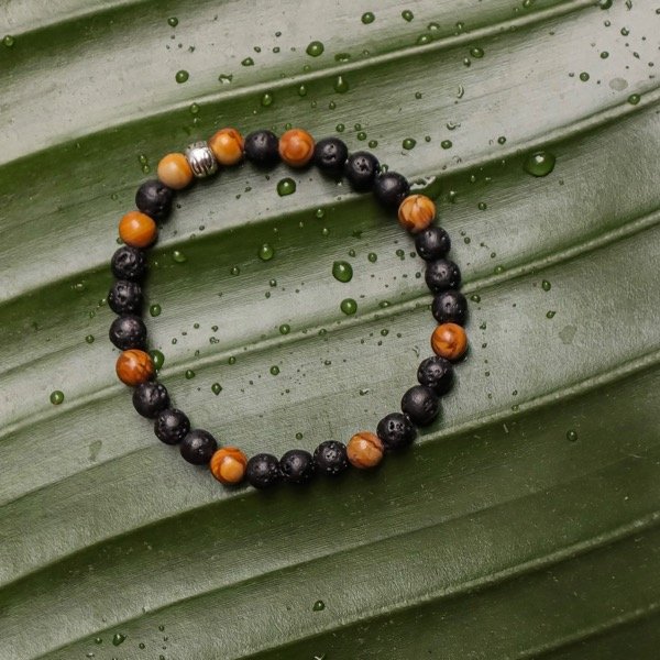 Pulsera elástica, hecha con piedras naturales, combinando Piedras Volcánicas y Jaspes Madera.